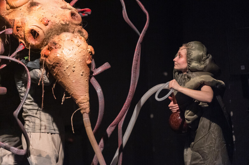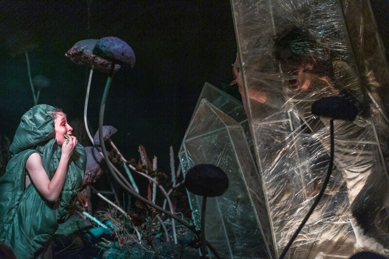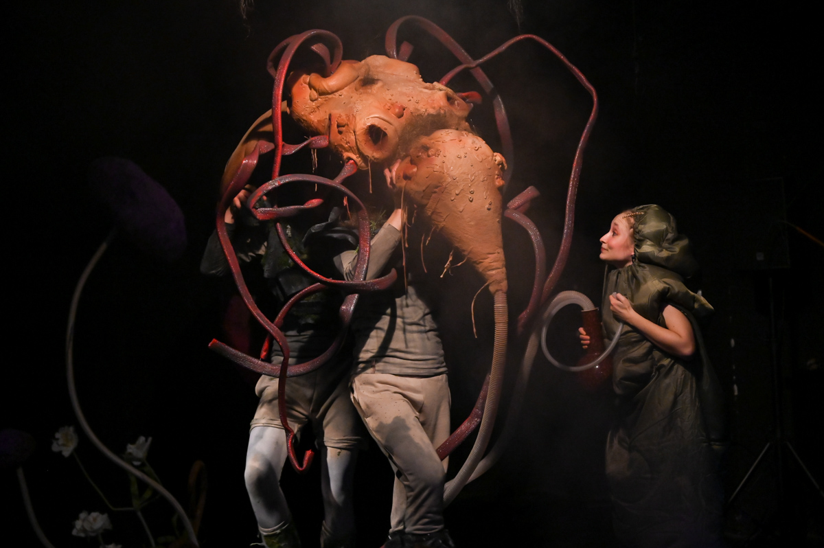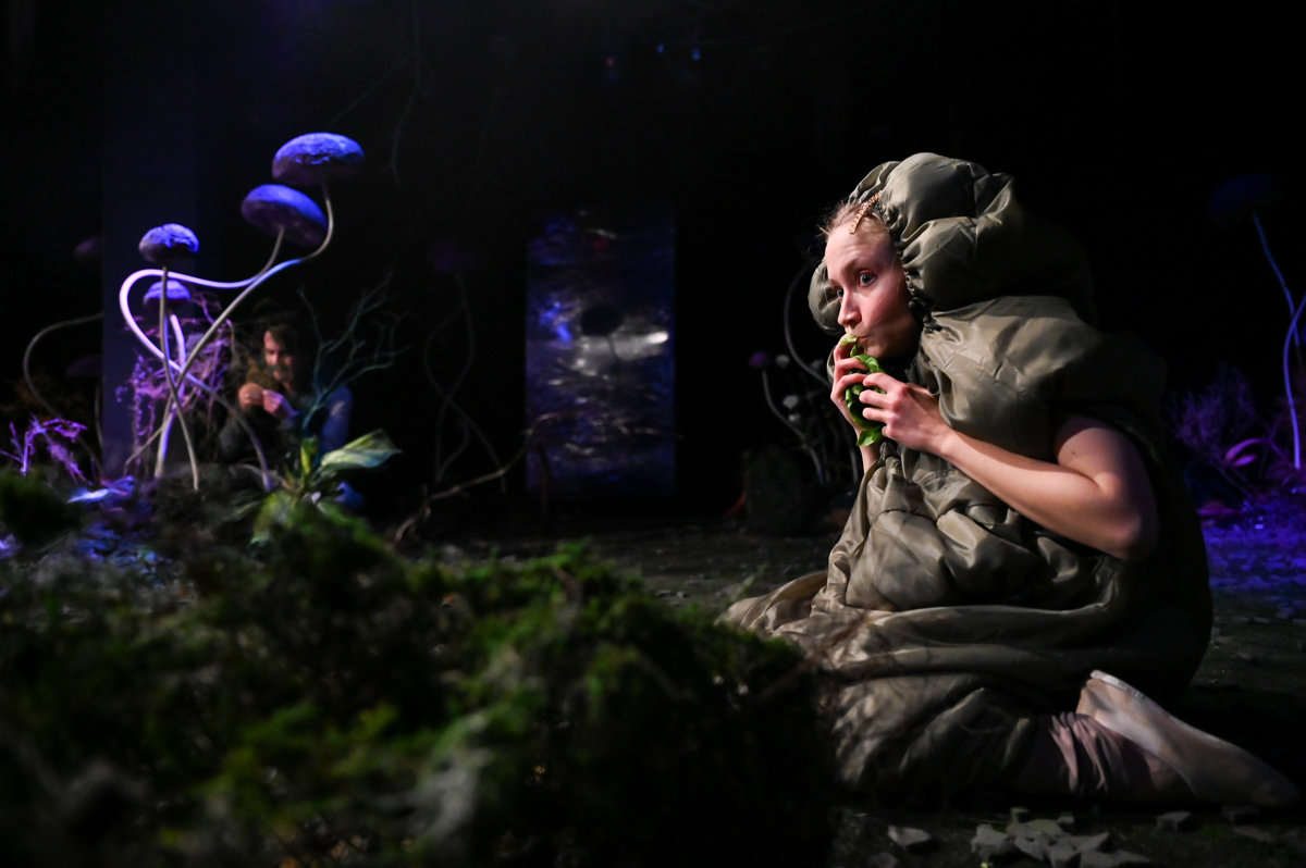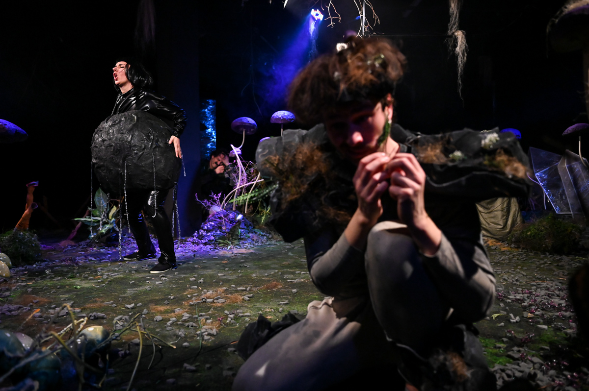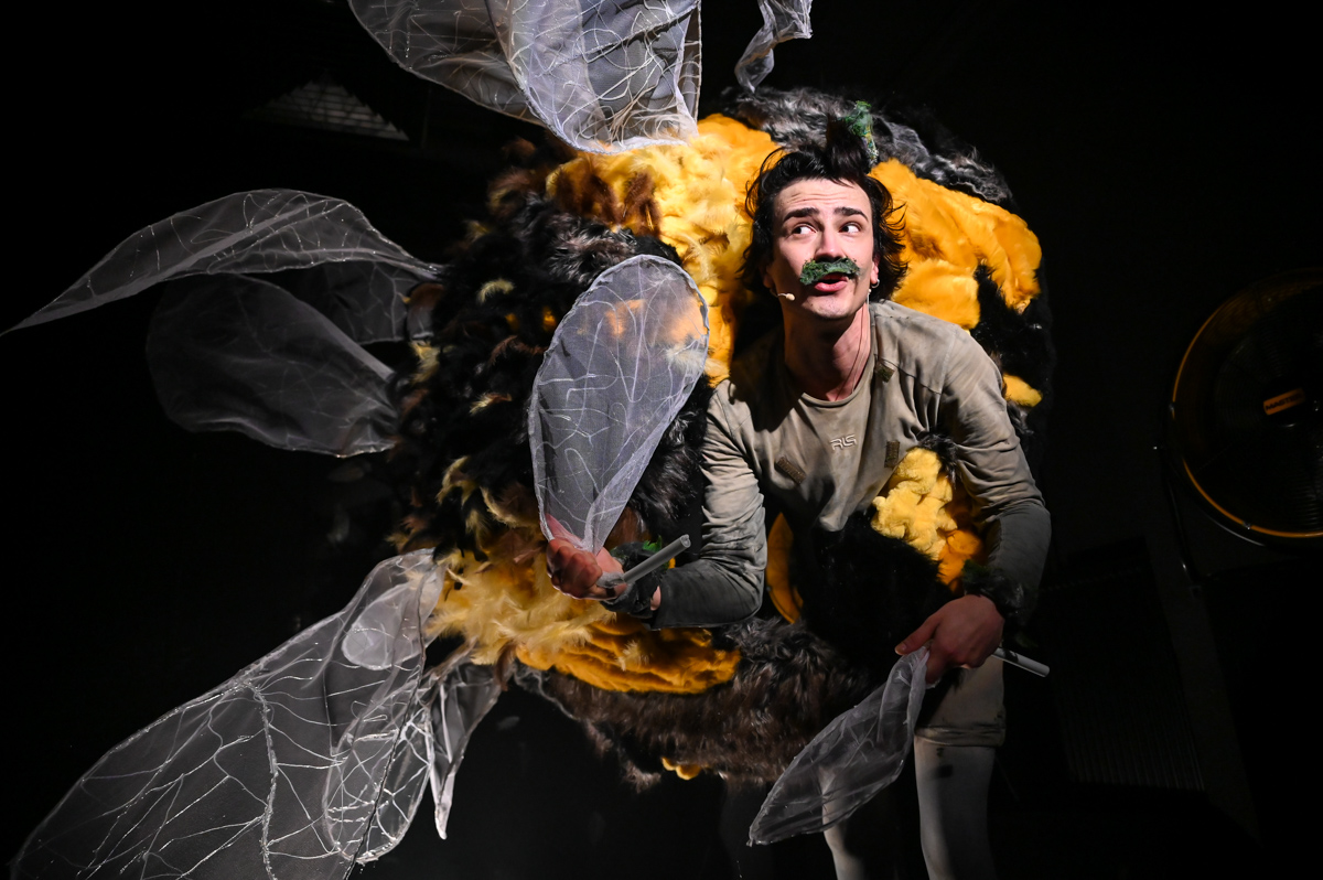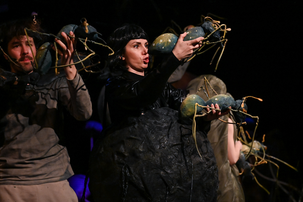 Zuza the Caterpillar wants to change – she wants to become different, better. Ziuta the Dung Beetle believes change is just a whim. Why change at all? You simply roll your ball of dung. That’s life. Who is right? Or maybe they both are? “Change Yourself!” is a story about the desire for change, the pursuit of change, and a shifting perspective on what change really means. It is also about the value of being here and now, about friendship, and about accepting what is. The set design marks the theatrical debut of painter Marcin Zawicki, a lecturer at the Academy of Fine Arts in Gdańsk, whose work is deeply inspired by nature. He received the Gdańsk Theatre Award for the set design in March 2023. The music was composed by Michał Jacaszek, a composer and producer of electroacoustic music, combining electronically processed sounds with live instrumentation.